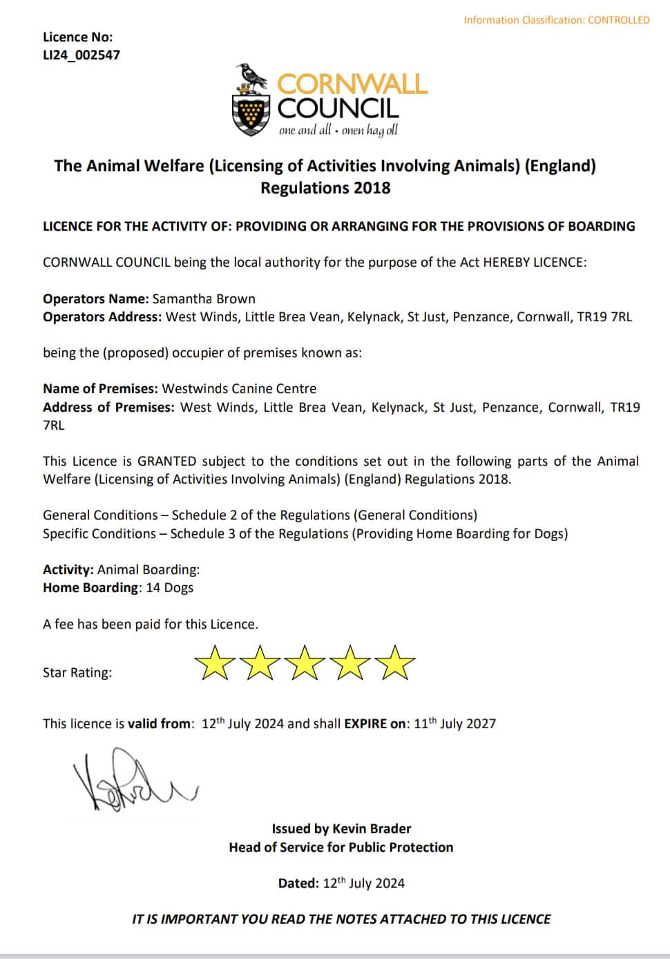 First established in 2010 Westwinds is a small family-run boarding kennel situated in West Cornwall. Located on our secure and private 6 acre small holding.